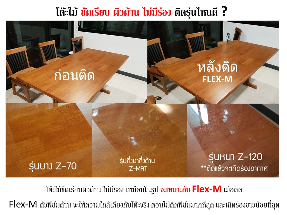 ไม้ขัดเรียบ ผิวด้าน ไม่มีร่อง ใช้ฟิล์มกันรอยเฟอร์นิเจอร์รุ่นไหนดี ?